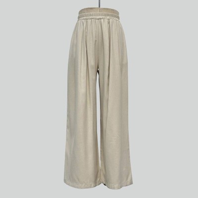 Simple Khaki High-Waisted Wide-Leg Pants Loose Casual Long Trousers with Drape