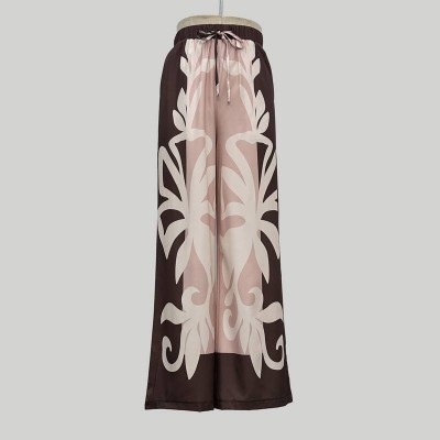 Vintage Pattern Drawstring Wide-leg Pants Loose Drape Casual Trousers