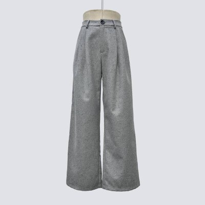 Gray Woolen Wide-Leg Pants Vintage High-Waisted Slimming Casual Trousers
