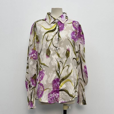 Vintage Floral Print Lapel Long Sleeve Shirt Elegant Chiffon-like Unique Blouse