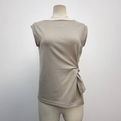 Simple Grayish Brown Side Twist Design Sleeveless Top Elegant Boat Neck Slim Base Shirt