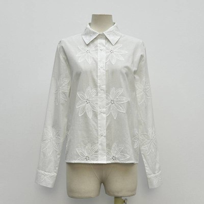 White Embroidered Floral Long Sleeve Lapel Shirt