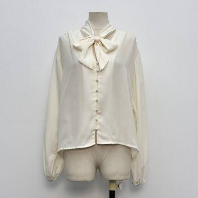 French Style Bow Tie Chiffon Blouse Long Sleeve Satin-like Elegant Shirt
