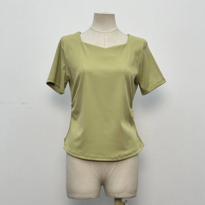 Elegant Square Neck Short Sleeve Chiffon Top Waist Cinched Slimming Gentle Style Summer Women's Top
