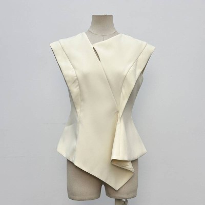 Elegant Irregular Cut Sleeveless Waist-cinched Top