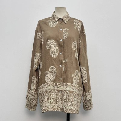 Vintage Paisley Pattern Lapel Long Sleeve Shirt Loose Slimming Temperament Commuting Top