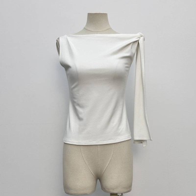 Simple White Off-the-shoulder Sleeveless Top Design Sense Ribbon Slim Fit Inner & Outer Wear Top