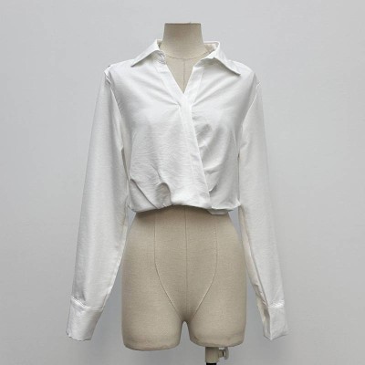 Black Waist-cinching Design Long-sleeve Shirt Temperamental Lapel Single-breasted Slim Top