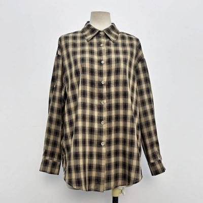 Vintage Plaid Long Sleeve Shirt Loose Casual Lapel Top