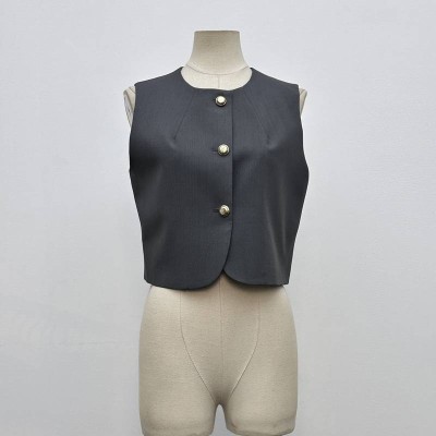 Elegant Commute Grey Sleeveless Cropped Vest Simple Single-breasted Outerwear Top