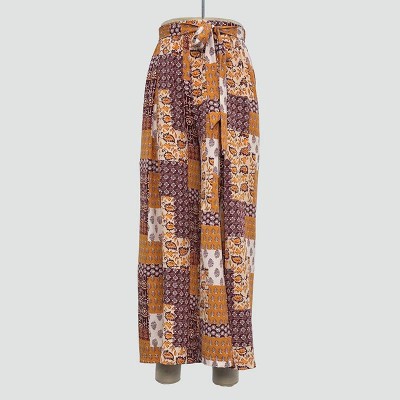 Vintage Patch Print Tie Waist Wide Leg Pants
