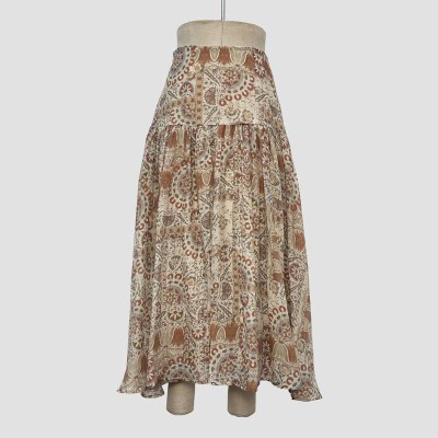 Vintage Patchwork Drawstring Ruffled Midi Skirt