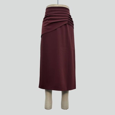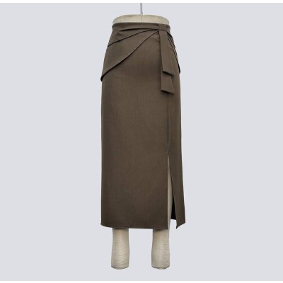 Elegant Waist-slit Midi Skirt Minimalist Commuter Brown Pencil Skirt