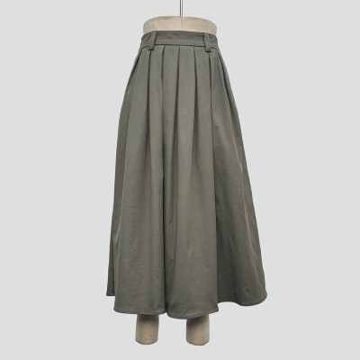 Khaki High Waist Drawstring Midi Skirt Vintage Commuter A-line Skirt