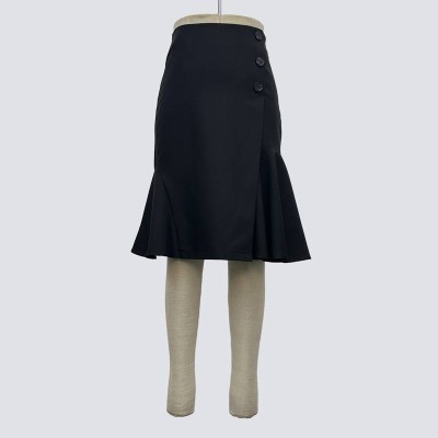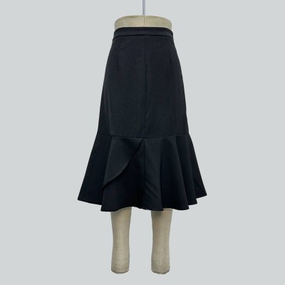 Black High Waist Mermaid Midi Skirt Elegant Commuter Ruffled Bodycon Skirt