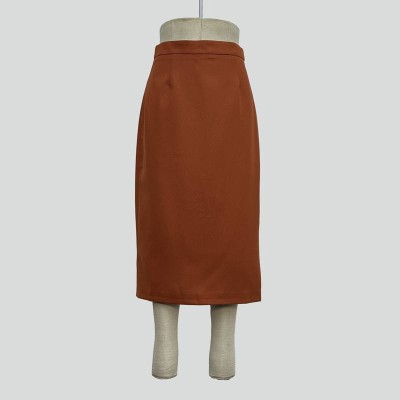 Simple High-waisted Brown Midi Skirt Commuter Versatile Solid Color Skirt