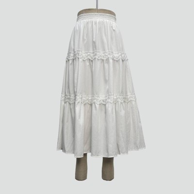 Sweet Lace Patchwork Elastic Waist White Midi Skirt