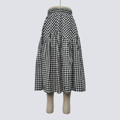 Black and White Gingham Elastic Waist Midi Skirt