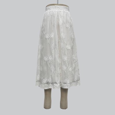 White Dandelion Embroidered Mesh Midi Skirt