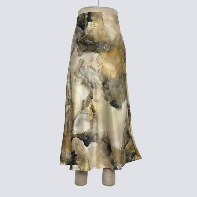 Ink Wash Satin Midi Skirt
