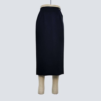 Navy Elegant Slim-fit Midi Skirt