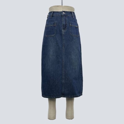Vintage Washed Denim Midi Skirt High-waisted Minimalist Skirt