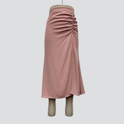 Elegant Knotted Pink Midi Skirt Temperament Drape Slim Skirt