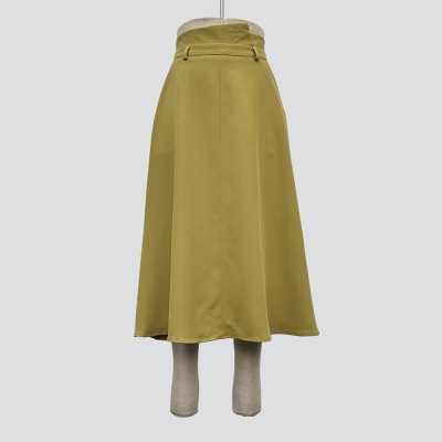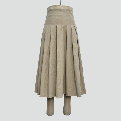 Simple Khaki Pleated Midi Skirt