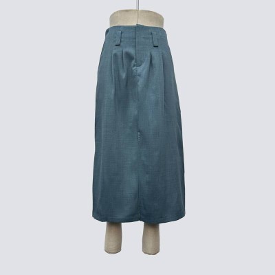 Vintage Grey-blue Pleated Midi Skirt