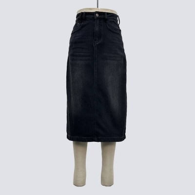 Black Gray Washed Denim Midi Skirt Vintage High Waist Jean Skirt