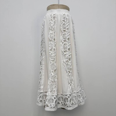 Vintage White Lace Hollow-out Elastic Waist Midi Skirt Elegant Fairy Style Skirt