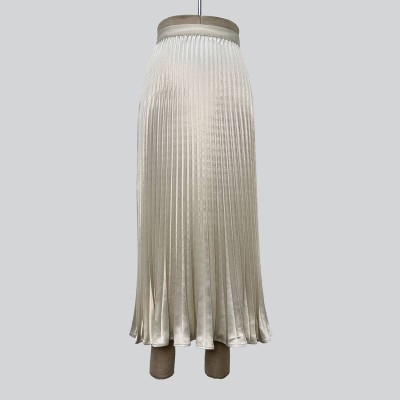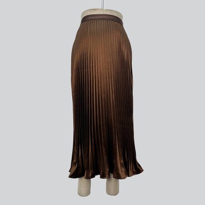 Glossy Satin Pleated Midi Skirt Draped Slim Fit Temperament Skirt