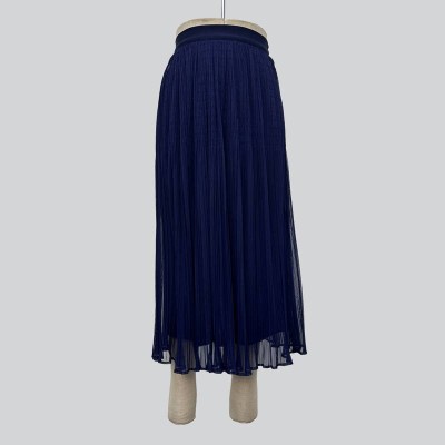 Dark Blue Pleated Chiffon Midi Skirt