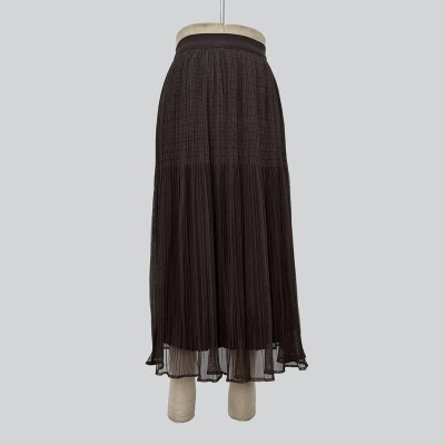 Dark Brown Pleated Mesh Patchwork Midi Skirt