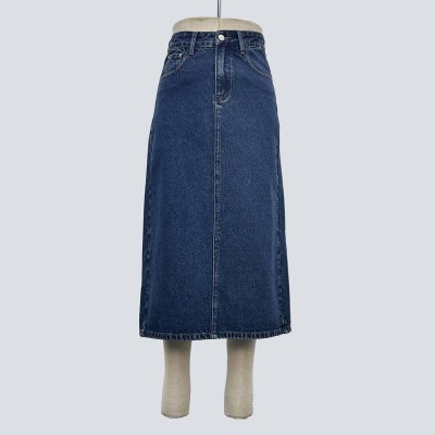 Navy Blue Irregular Ruffle High-waist Midi Skirt Elegant Commuter Slim Skirt
