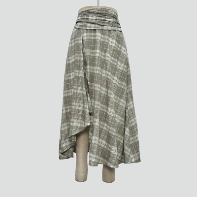 Vintage Plaid Asymmetrical Hem Midi Skirt