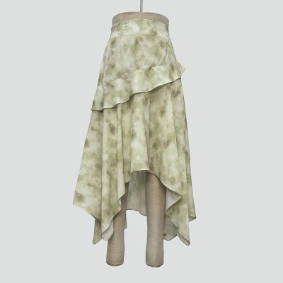 Off-white Lace Patchwork Irregular Ruffled Midi Skirt