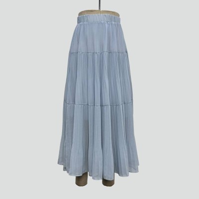 Light Blue Pleated Patchwork High Waist Maxi Skirt