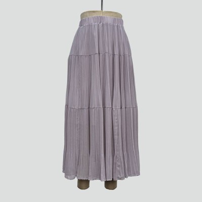 Light Purple Pleated Tiered Elastic Waist Maxi Skirt