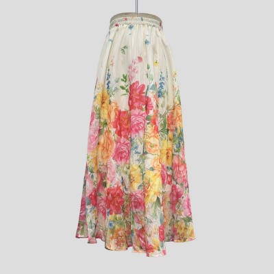 Romantic Floral Print Elastic Waist Maxi Skirt
