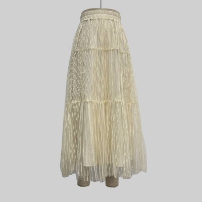 Gentle Mesh Glitter Long Skirt, Fairy Style Elastic Waist Drape Maxi Skirt