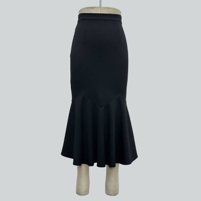 Black High Waist Slim Mermaid Hem Midi Skirt Elegant Hip-hugging Skirt