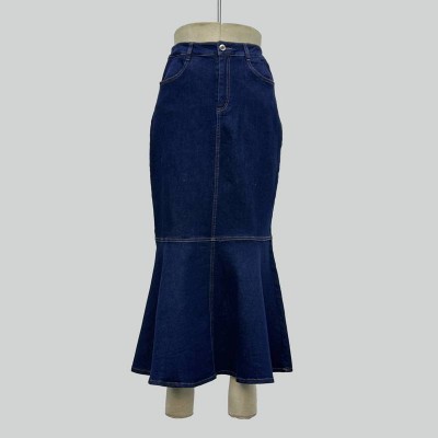 Vintage Denim Mermaid Maxi Skirt High Waist Slim Fit Hip Wrap Skirt
