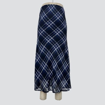 Vintage Blue Plaid Drape Maxi Skirt Elegant High Waist Mermaid Skirt