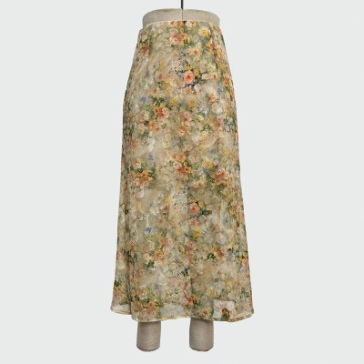 Vintage Oil Painting Style Floral Midi Skirt Drape Chiffon Elegant Long Skirt