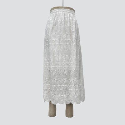 Elegant Hollow Embroidery White Maxi Skirt Elastic Waist Slim Fit Mid-Long Skirt
