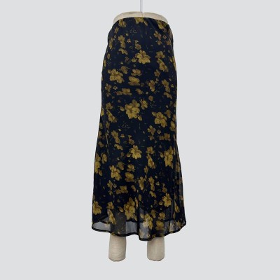 Vintage Black Base Yellow Floral Chiffon Maxi Skirt