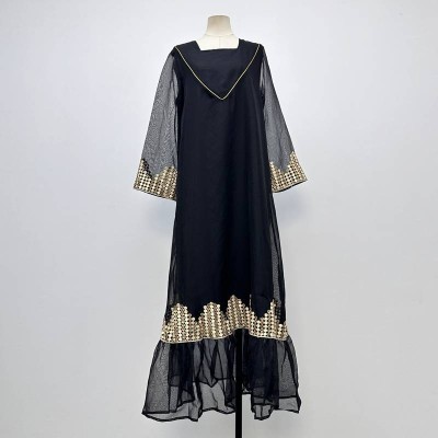 Black Mesh Sequin Embellished Long Evening Dress Elegant Banquet Gown