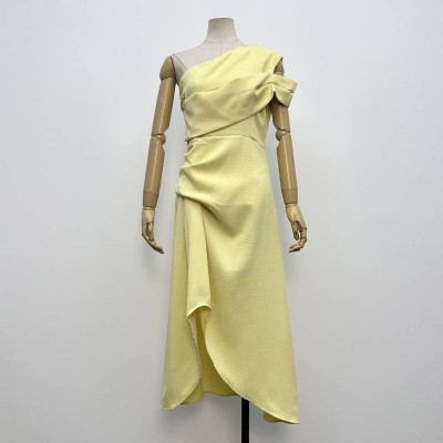 Elegant Off-Shoulder Ruched Light Yellow Midi Dress Party Evening Gown