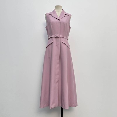 Sleeveless Lapel Waist-Tie Midi Shirt Dress